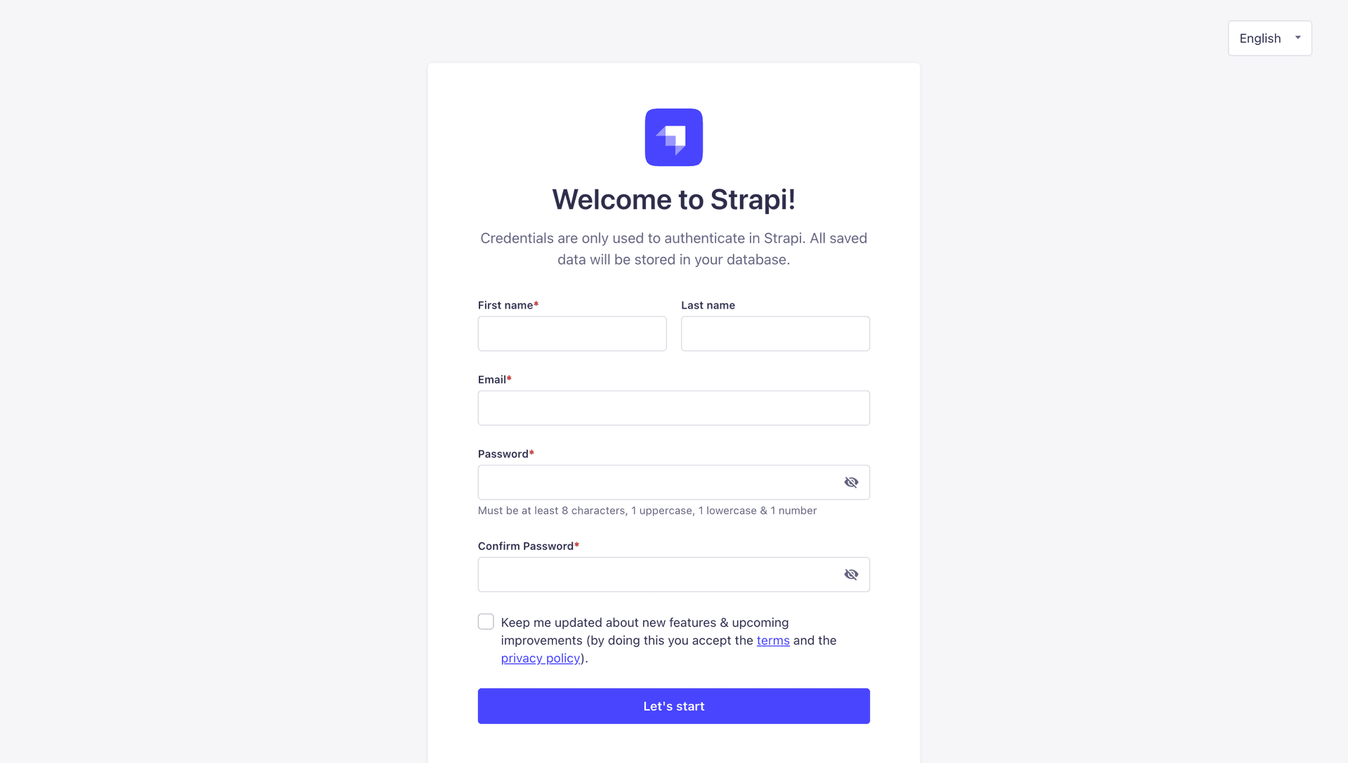 To proceed, click the Let's start button to access the admin dashboard. Now, let's learn how to create the blog schema in Strapi CMS.